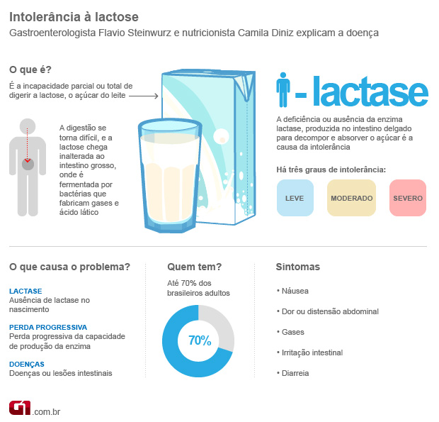 A intolerância à lactose é a incapacidade de digerir lactose. A lactose é um tipo de açúcar encontrado no leite e em outros produtos lácteos. A intolerância à lactose ocorre quando o intestino delgado não produz enzima lactase suficiente. As enzimas ajudam o corpo a absorver alimentos. Não ter lactase suficiente é chamado de deficiência de lactase. Os corpos de bebês produzem esta enzima para que eles possam digerir leite, incluindo leite materno. Bebês prematuros às vezes têm intolerância à lactose. As crianças que nasceram de gestação a termo geralmente não mostram sinais de intolerância à lactose até completarem pelo menos 3 anos de idade. A intolerância à lactose pode começar em diferentes momentos da vida.